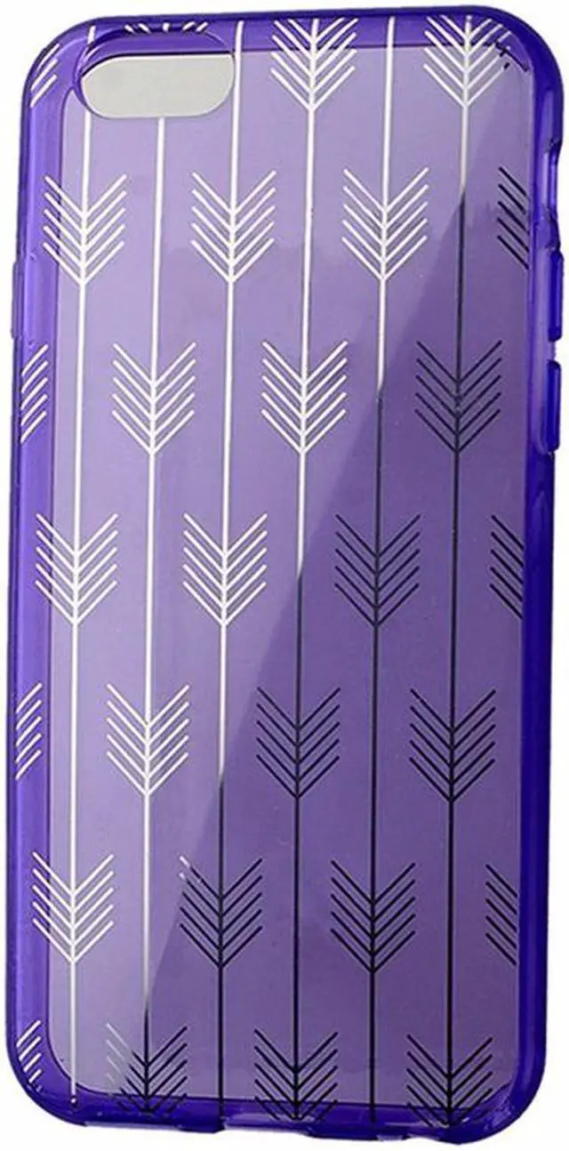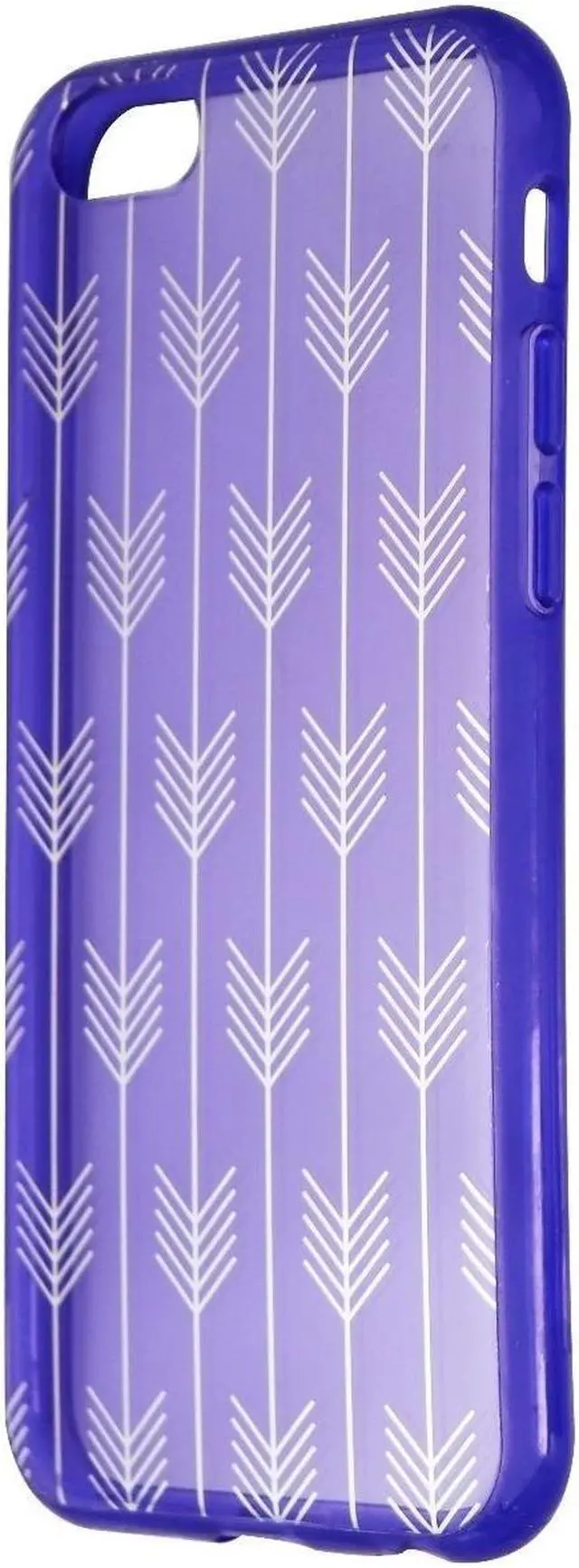 Incipio brand products, Design Series Hybrid Case for Apple iPhone 6 ( 4.7" inch) and iPhone 6s. Translucent Purple finish with Silver Arrows design. Scratch resistant finish, excellent shock absorption. Hardshell backing with flexible rubber sides.