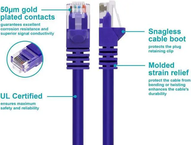 Monoprice Cat5e fixed length network cables are the perfect combination of value and performance. Available in a large assortment of colors and lengths, we have a cable to fit every situation. Each cable is made of 24AWG stranded pure bare copper conductor pairs with 50m gold plated contacts (short body). Most budget cables skimp with only 10m. Each cable features color matched, snagless strain relief boots. Monoprice Cat5e and Cat6 cables are made of 100 Percent pure bare copper wire, as opposed to copper clad aluminum (CCA) wire, and are therefore fully compliant with UL Code 444 and National Electrical Code TIA-568-C.