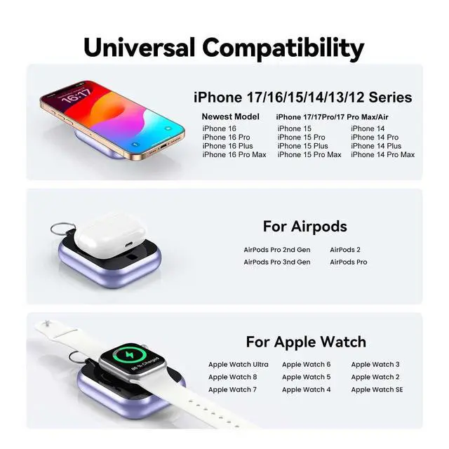 Magnetic Power Bank 10000mAh with Detachable Lanyard-3-in-1 Magnetic Wireless Charger,22.5W PD Fast Charging,Compact Portable Battery Pack for iPhone 16/15/14/13/12,Apple Watch & AirPods