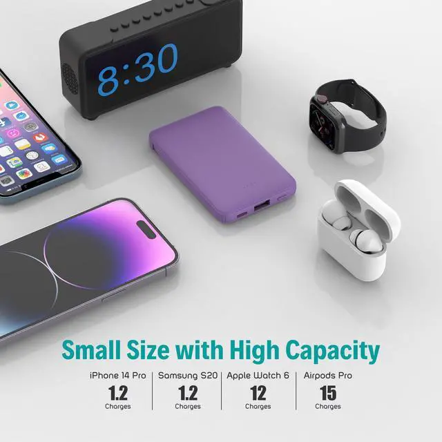 Small portable charger just only weights 0.27lb(122g), ultra slim lightweight and compact size make it easier to put in any pocket.