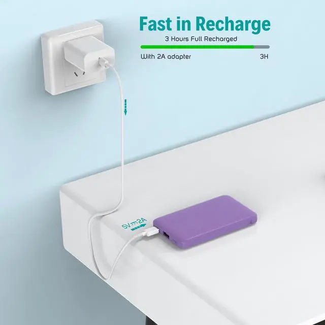 USB-C input port supports fast recharging this 5000mAh battery pack just only 3 hours.