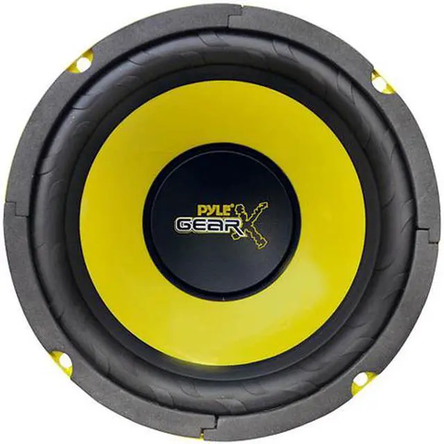 Get in gear with the Pyle Gear-X series These speakers are designed to provide the best quality sound for the budget-minded enthusiast. This 6.5 woofer has 300 watts of pure power supported by a 1" high temperature voice coil to boost the low end. Hear the rumbling lows of your favorite music thanks to the 30 oz. magnet structure. The non-fatiguing butyl rubber surround and yellow-color poly-injected cone provide a sturdy foundation for keeping your sound crystal clear and distortion-free. To boost performance, these speakers have been equipped with a strong capacitor, meaning your speakers will never struggle for power. These speakers look cool, too, thanks to the yellow coated steel basket. You'll hear everything you were meant to hear with Pyle Gear."PMPO Output Power: 300 WDriver Type: 6.50 Polypropylene WooferImpedance: 4 OhmWeight (Approximate): 3.19 lbLimited Warranty: 1 Year"