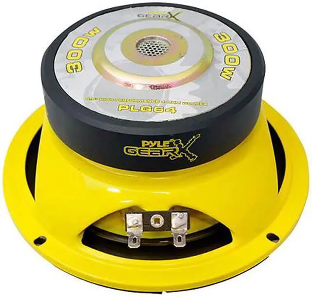 Get in gear with the Pyle Gear-X series These speakers are designed to provide the best quality sound for the budget-minded enthusiast. This 6.5" woofer has 300 watts of pure power supported by a 1" high temperature voice coil to boost the low end. Hear the rumbling lows of your favorite music thanks to the 30 oz. magnet structure. The non-fatiguing butyl rubber surround and yellow-color poly-injected cone provide a sturdy foundation for keeping your sound crystal clear and distortion-free. To boost performance, these speakers have been equipped with a strong capacitor, meaning your speakers will never struggle for power. These speakers look cool, too, thanks to the yellow coated steel basket. You'll hear everything you were meant to hear with Pyle Gear.