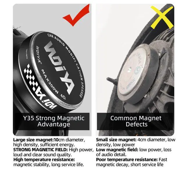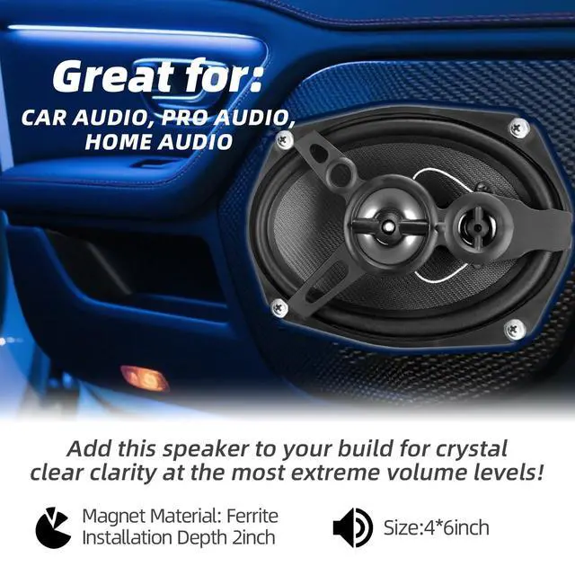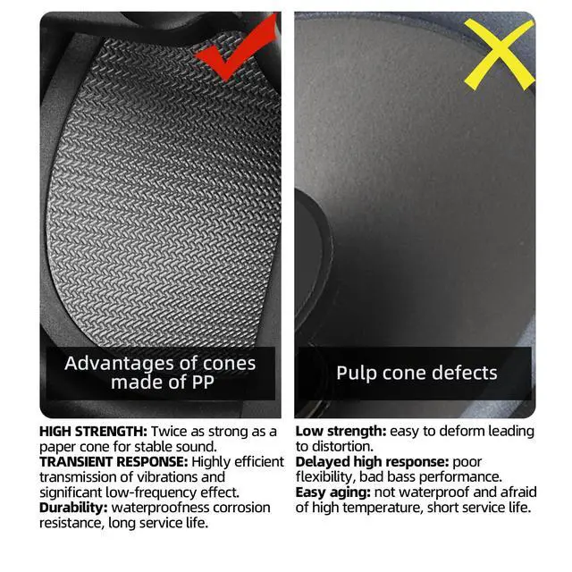 Frequency Response - Receive a rich and immersive sound reproduction across different music genres. This car audio speaker contains a broad range of audio frequencies with a response range 20 kHz.