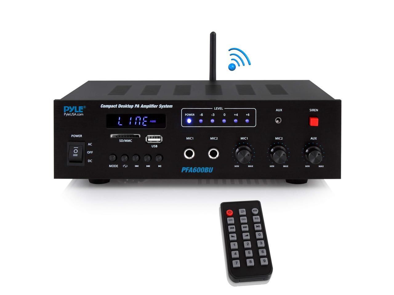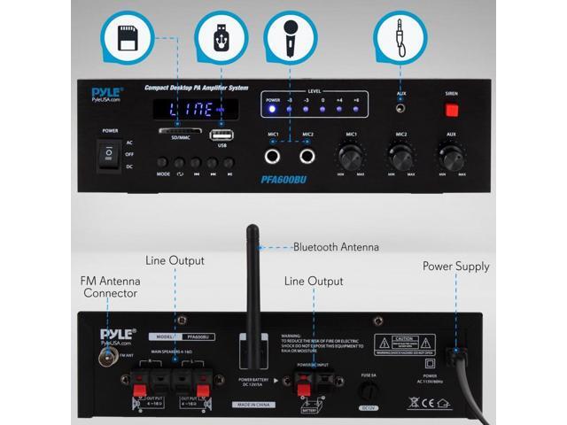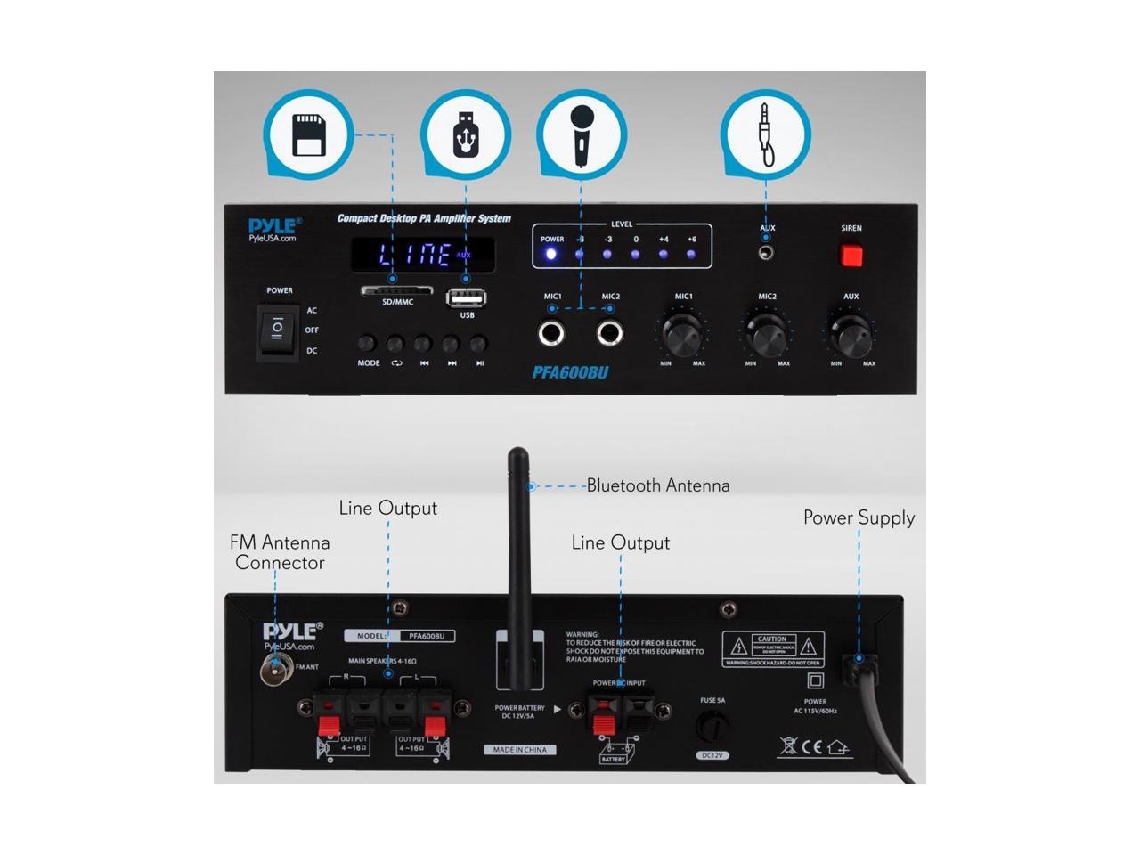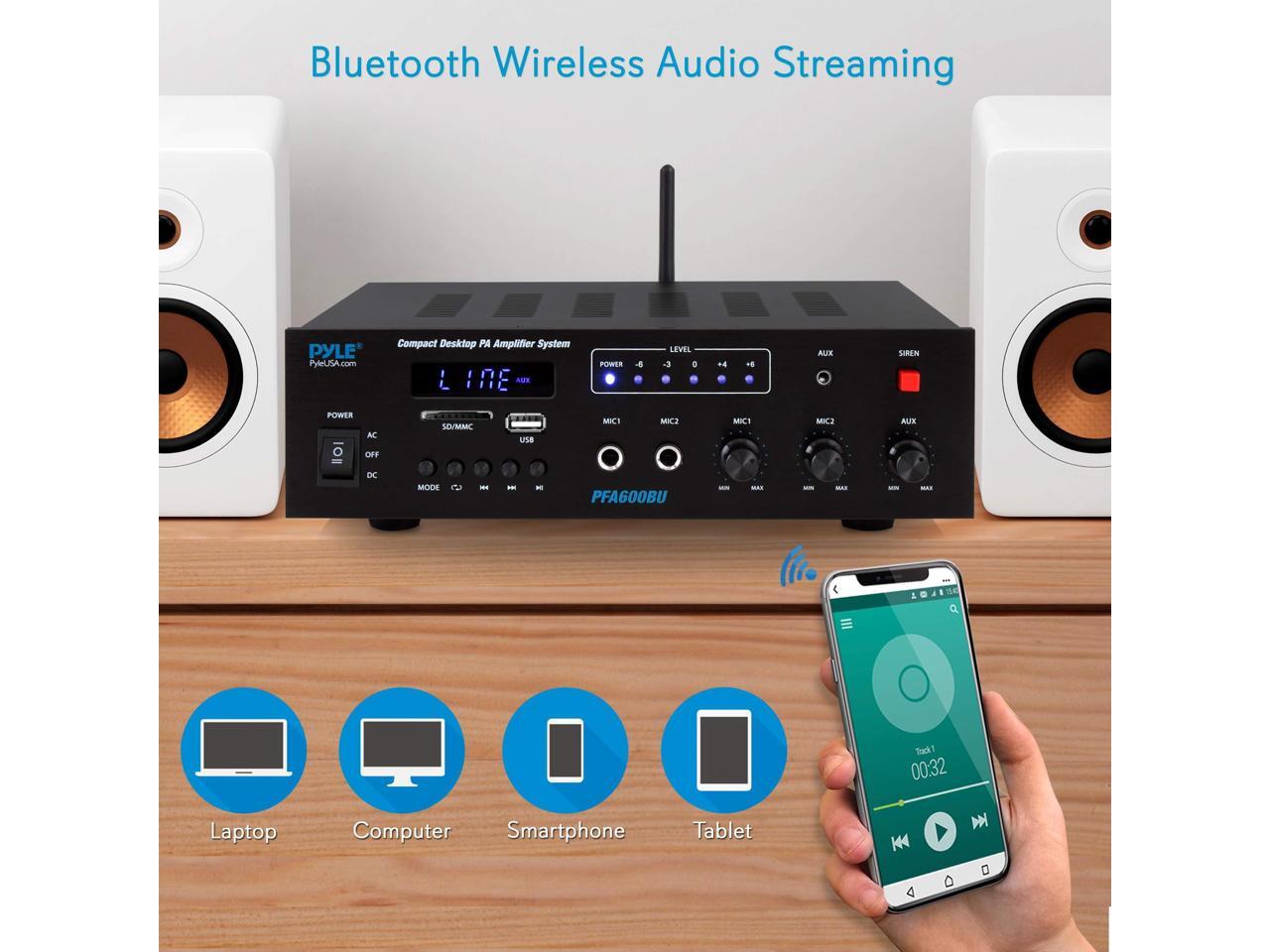 Bluetooth Public Address Amplifier - Compact PA Speaker & Microphone Receiver System with (2) Mic Inputs, MP3/USB/SD Readers, FM Radio (300 Watt)