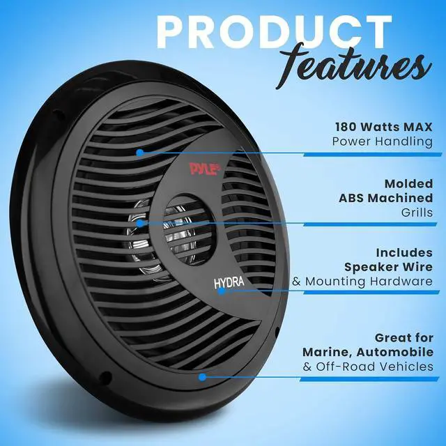 With 180 watts of max power and a sensitivity of 91dB, these speakers produce crisp, clear sound, making them perfect for boats, automobiles, and off-road vehicles. The universal OEM size allows for seamless installation. Whether on the water or off-road, these speakers are the ideal choice for upgrading your audio system.