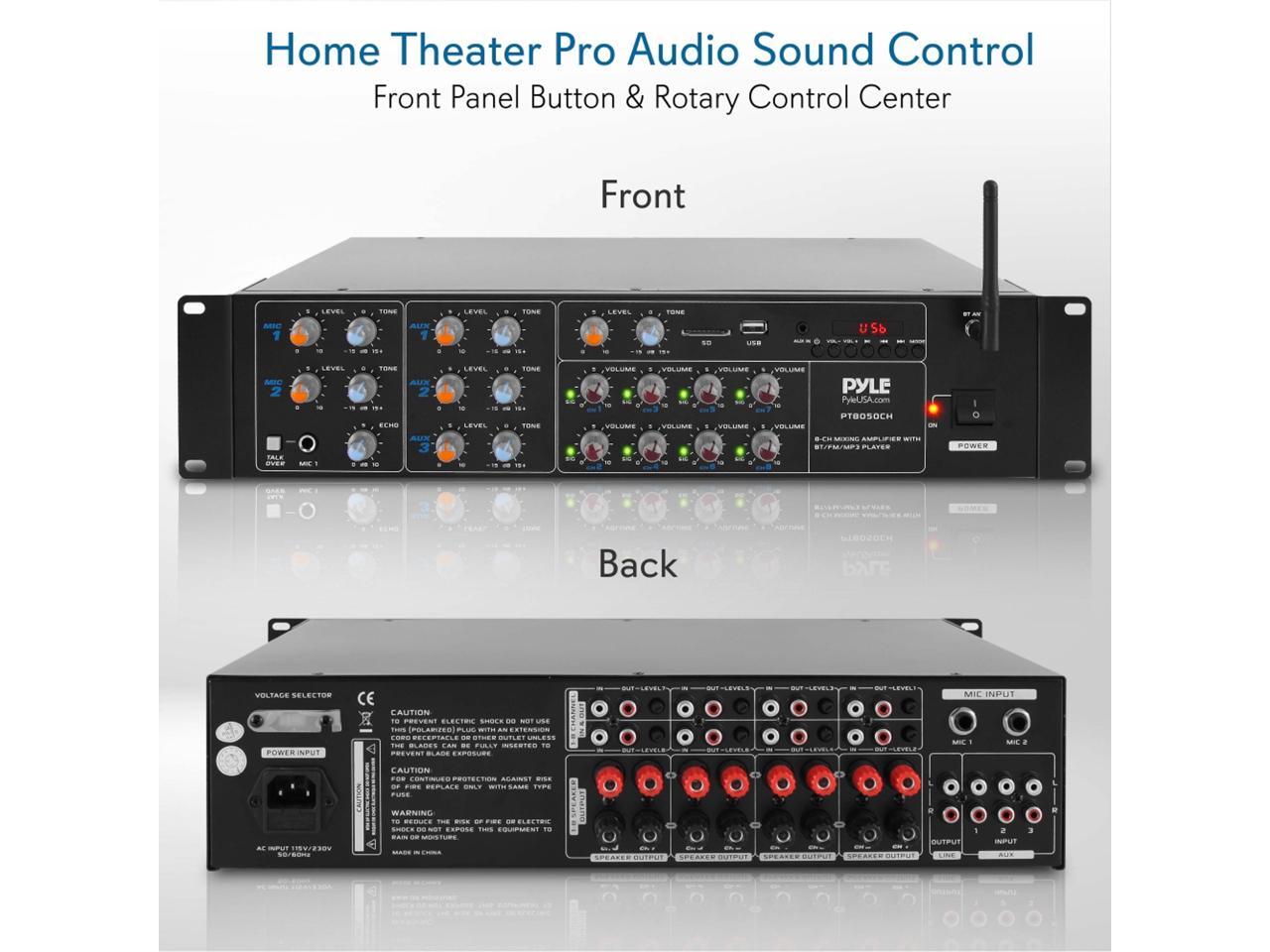 Pyle 4000 Watt 8 Channel Audio Bluetooth Amplifier Sound Mixer Receiver System