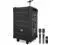 This versatile PA system includes a rechargeable 12V battery that provides up to 2.5 + hours of continuous playtime, USB and Micro SD card readers for MP3 playback, and an FM radio with a digital LED display. For added convenience, it comes with two wireless handheld microphones, a remote control, and a power cable. Designed with portability in mind, the system features a rugged build, carry handle, and rolling wheels, making it easy to take your music anywhere.