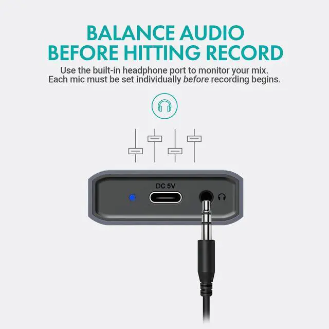 Built-In USB-C Power and Headphone Monitoring Keep your setup running with the 5V USB-C charging port for stable power, and monitor your audio in real time with the integrated 3.5mm headphone outputperfect for live sessions and critical listening.