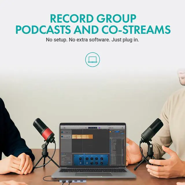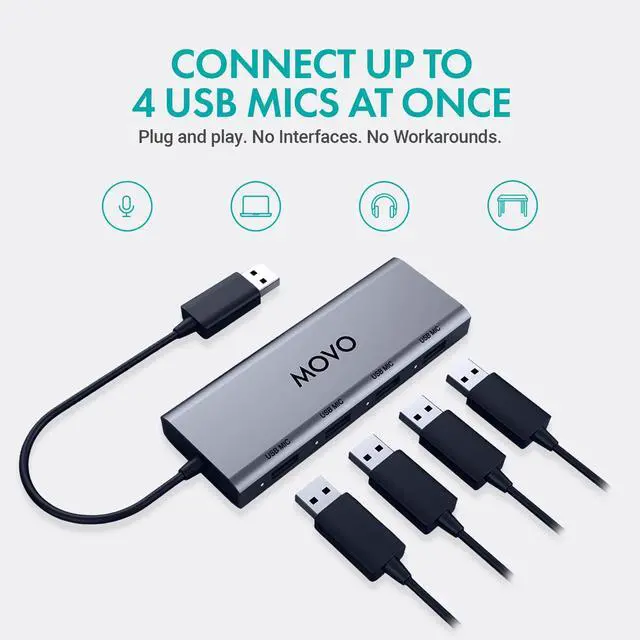 Connect Up to 4 USB Microphones The UMX-1 interface lets you plug in and run up to four USB mics at once, perfect for podcasts, interviews, and multi-guest streaming setupsno dropouts, no interference.