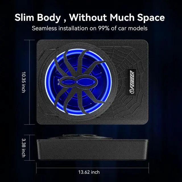 Slim ubwoofer Compatible with 99% of car types, can be mounted in the back seat and trunk