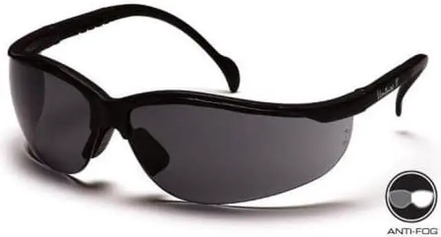 Safety Glasses, Series Venture II (R), Gender Unisex, Lens Color Gray, Polarized Lens No, Lens Coating H2X Anti-Fog, No Foam Lined, Eyewear Frame Design Wraparound, Eyewear Frame Style Half-Frame, Frame Color Black, Eyewear Size Universal, Frame Material Nylon 66, Lens Material Polycarbonate, Temple Color Black, Temple Style Adjustable, Photochromatic Lens No, Metal Detectable No, X-Ray Detectable No, UV Protection 99 Percent UVA/UVB, Includes Not Applicable
