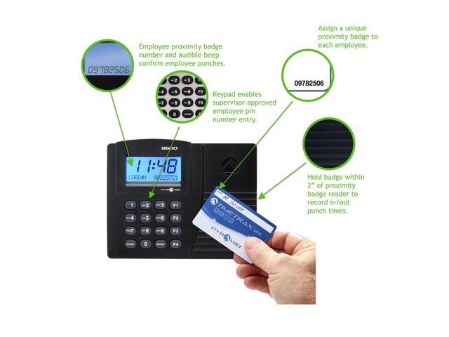- Instantly records employee arrival times, breaks, lunches, overtime and departure times with proximity badges; keypad for optional supervisor approved card number entry