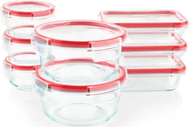 | Features | Good food is good to go-to office, freezer, fridge or cupboard - thanks to these lock-in-place lids and durable Pyrex glass containers. The colorful plastic lids in this 16-piece set seal in freshness and prevent leaks. Just fill, label, stack, and then nest to store compactly till you need them again. Airtight, leak-proof lids with 4 locking tabs Pure Pyrex glass containers resists stains and does not absorb food odors or flavors Containers are dishwasher, freezer and microwave safe BPA-free lids are top-rack dishwasher, freezer and microwave safe Built-in Write + Erase label on lid |