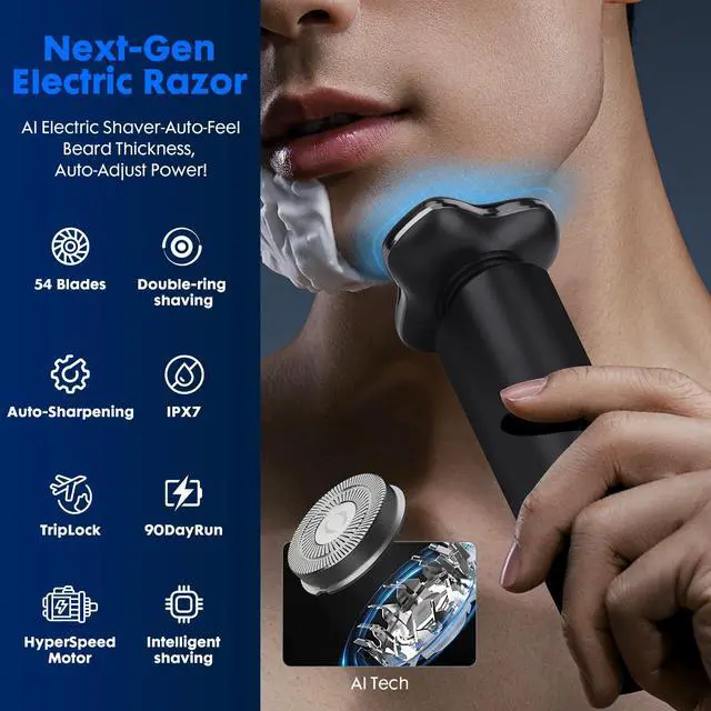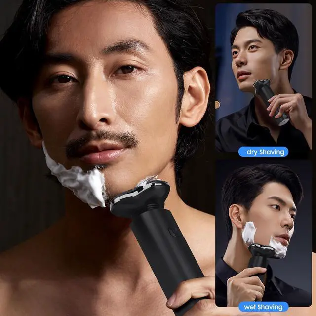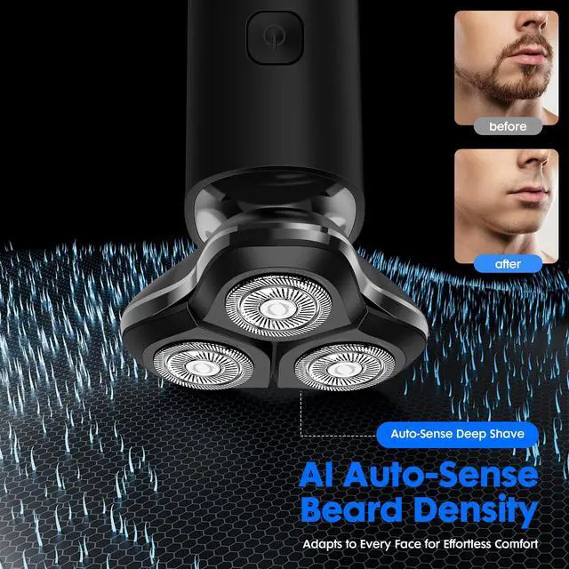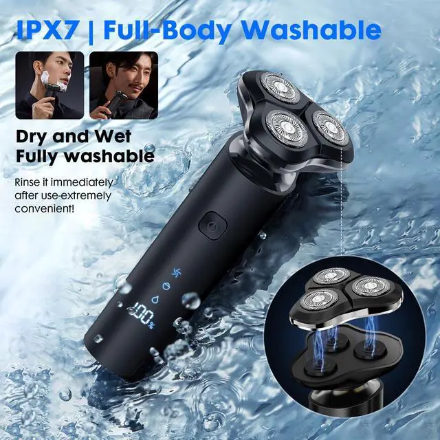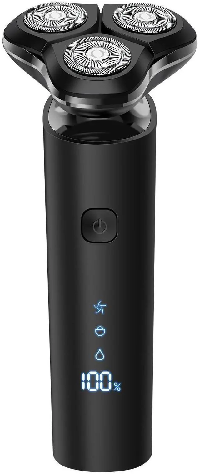 Black Electric Razor for Men with 3-Blade Rotary System, Touch Switch, LED Display, Travel Lock