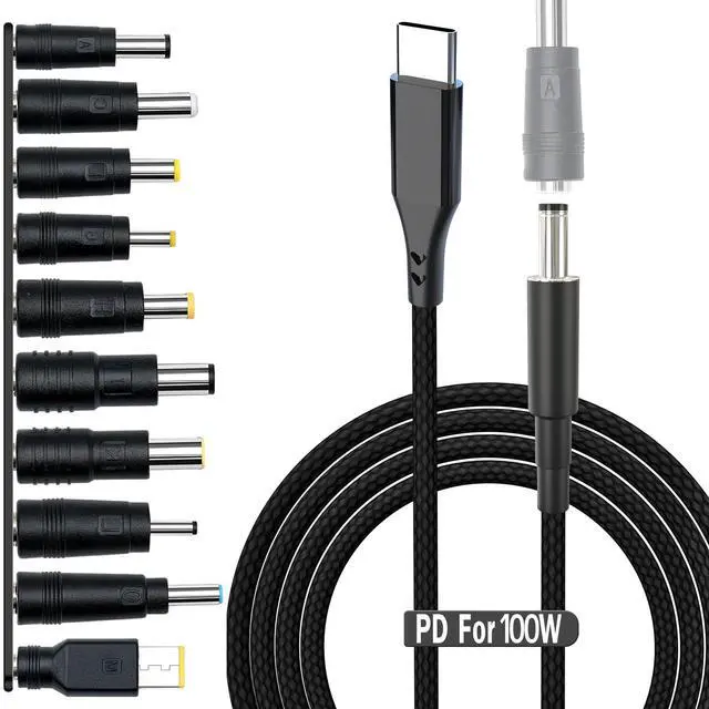 This charging adapter kit is a combination of PD Type C to DC power cable and universal DC connector, which can be compatible with UPS, ONT, router, printer, projector, and Sony, Toshiba, BenQ, Fujitsu, Samsung, MSI, Acer, Asus, Compaq, ideapad/Thinkpad IBM Lenovo, Dell, HP and other 100w 90w 65w 45w computer models.