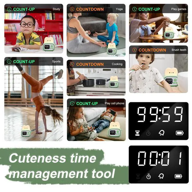 LED display digital time clock, you can clearly see the time at any time even at night, one button to switch the light and turn off the beep bell, even young children can also be very easy to use, large timer set buttons also allow children to clearly set the countup and countdown timer