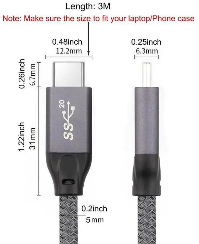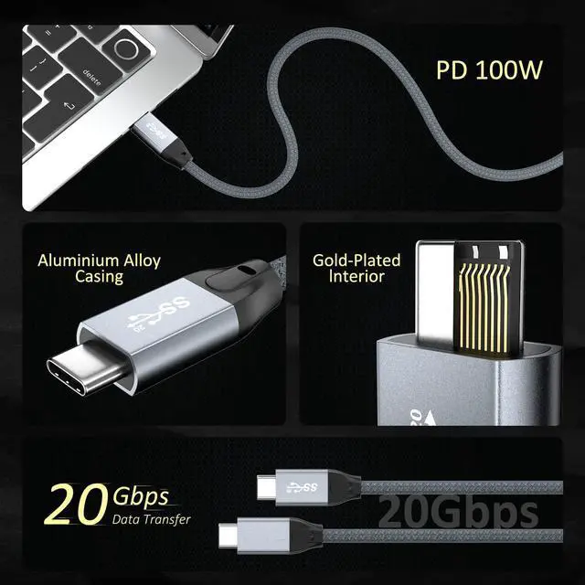 USB C 3.2 Cable charge your devices at 20V/5A max 100W.