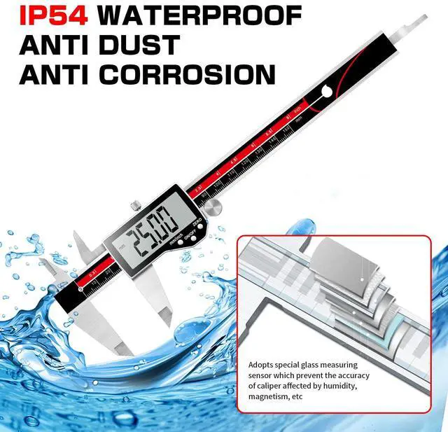 - IP54 can just protects against dust, splashing water and grease so please don't use the caliper in water.