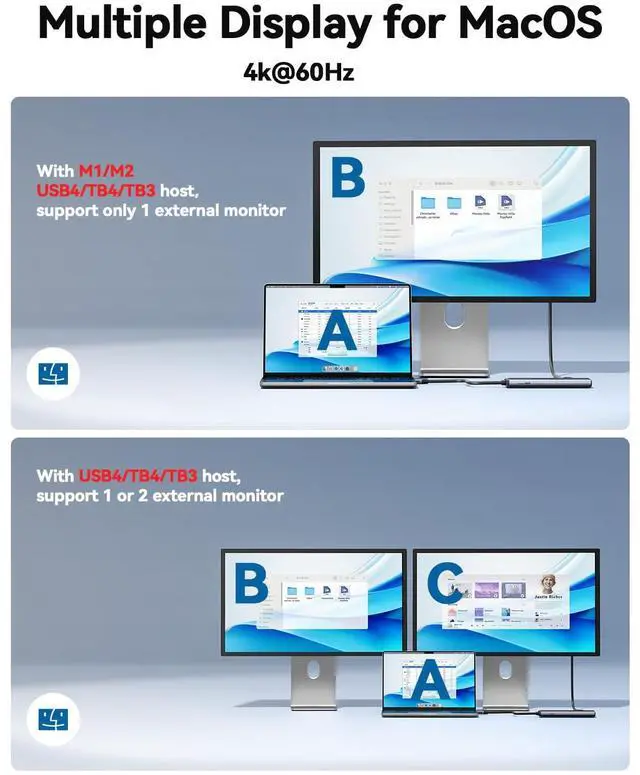 Tht type c hub support single display 8k,dual display 4k@60Hz.(Note: MAC computer only support 4k).