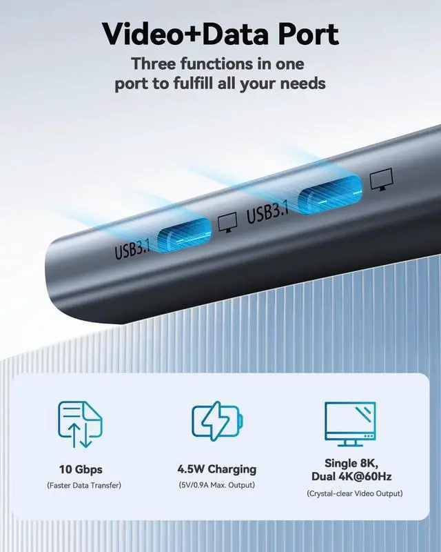 Video output port is only compatible with fully functional USB-C, Thunderbolt 3/4/5, and USB4 port devices.
