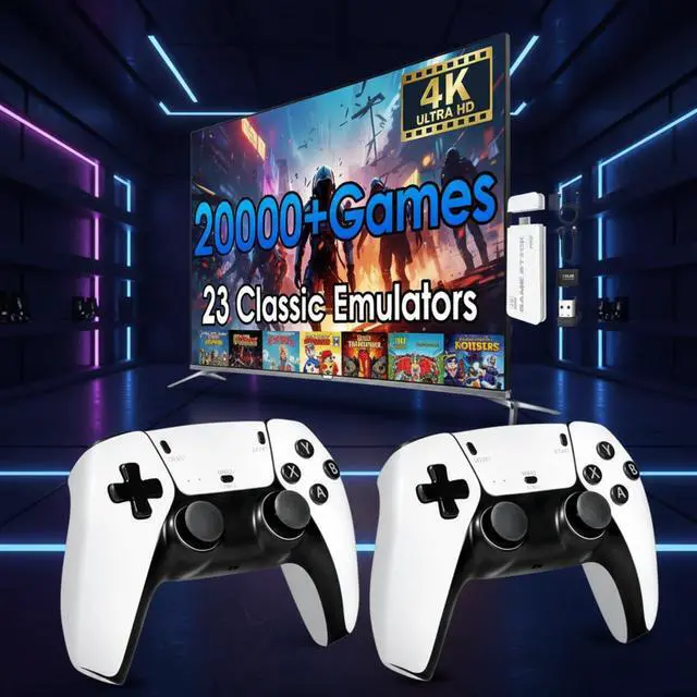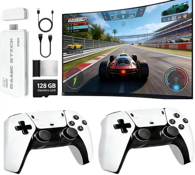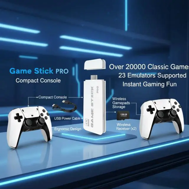 Retro Wireless Gaming Console 2026 New Edition Built-in 128GB storage Features 23 emulators supporting 20, 000+ games Includes dual 2.4GH z wireless controllers 4K HDMI TV gaming stickplug and play