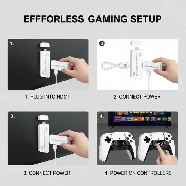 4K HD Display & Immersive Gaming Experience Supports 4K Ultra HD output via HDMI, delivering crisp visuals and vibrant colors on your TV. This 4K HDMI game stick elevates the image quality of traditional retro consoles, letting you enjoy classics with modern visualsperfect for family game nights or solo play.