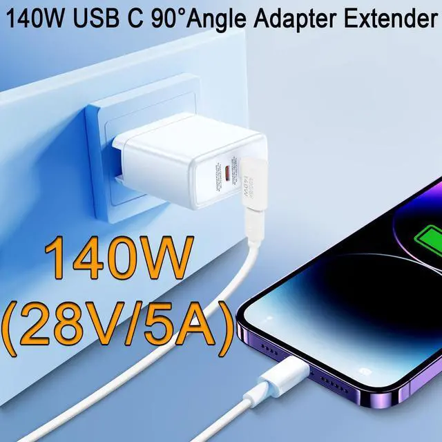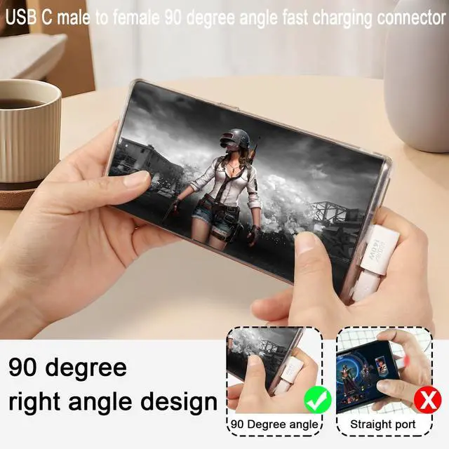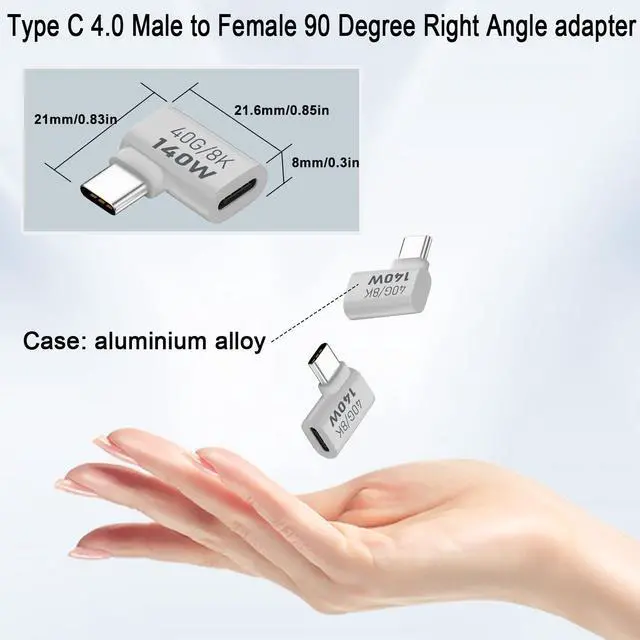 90 Degree Right Angle Fast charging connector. Suitable for extending the USB C port of the expansion device in a small space. Can be left on the port to avoid it being damaged by daily use. Suitable for mobile phone,tablet,game console,U disk and other devices with Type C interface, plug and play. Aluminium alloy shell, sturdy and durable, easy to dissipate heat. Surface baking paint, exquisite appearance.