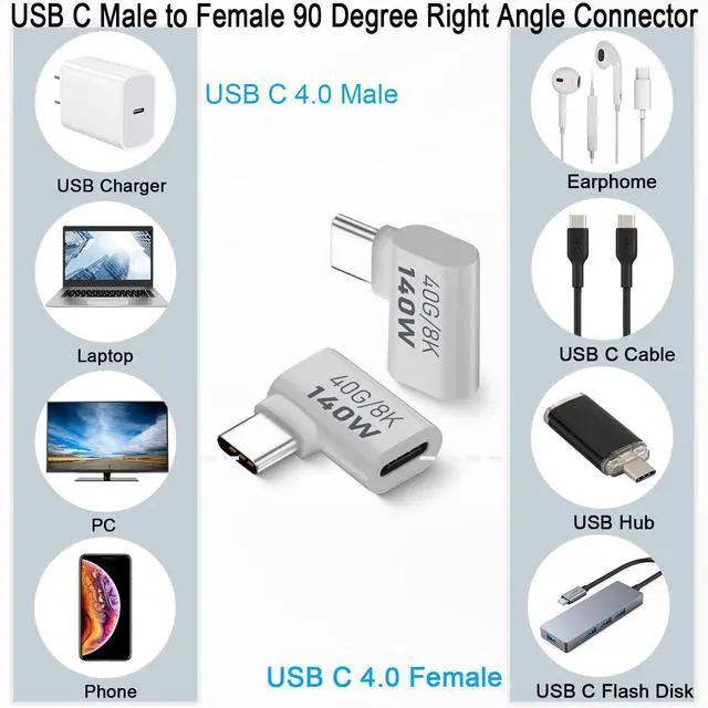 Package: 2*USB4.0 C Male to Female Right Angle Adapter Extender (Side Bend)