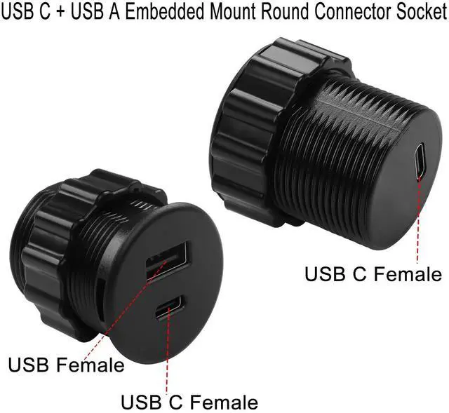 Package: 1*USB C & USB threaded fixing Mount Adaptor Fast charging socket, 1*Nut