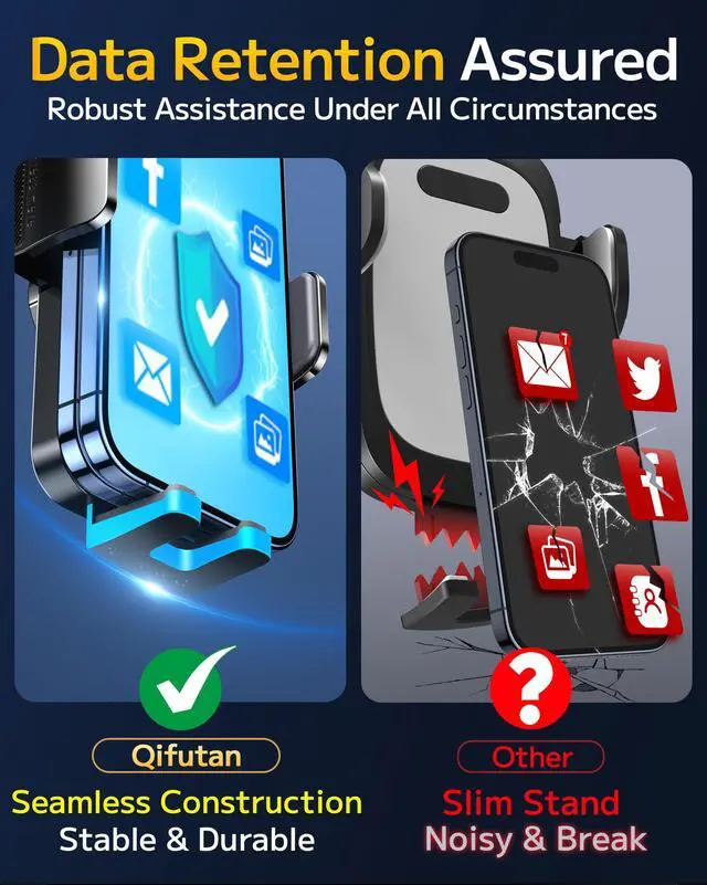 Strong Suction Performance: Car phone holder comes with a double-locked suction cup made of heat-resistant TPU material, guaranteeing it stays firmly attached to your dashboard even in extreme heat. Reactivate its sticky power by washing with water and air-drying.