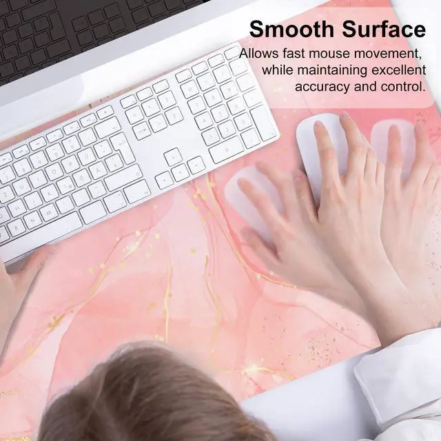 KEHIPI Large Mouse Pad, Extended Desk Mat for Desktop, PU Leather Waterproof Gaming Mousepad, Computer Desk Accessories Protector Writing Pads for School Office Home 31.5" x 15.7" - Dreamy Pink Marble