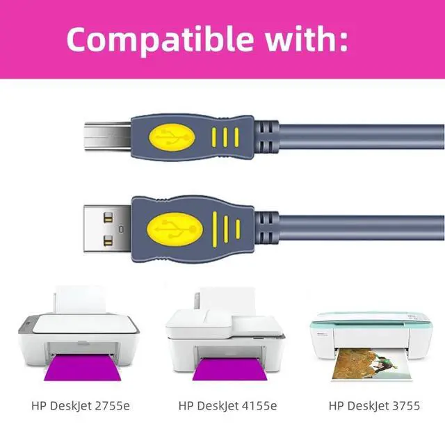 USB 2.0 Printer Cable for HP DeskJet 2755e, 2855e, 4155e, 4255e, 3755, 3772, 2755, 2752, 10 Feet