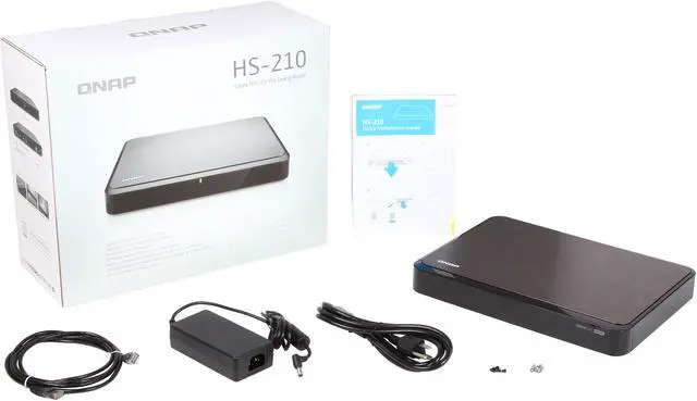 The QNAP HS-210 is a stylish and feature-rich two-bay NAS solution designed to maximize your home entertainment. Its modern set-top design seamlessly fits alongside your HDTV, game consoles, and other elements of your digital lifestyle, while the fanless cooling allows you to enjoy an optimized audiovisual experience without any distractions. High performing components in concert with advanced QTS 4.0 NAS OS and rich apps take your entertainment, storage, and backup to the next level. Easy to use and maintain, this unit features an easily accessible layout that makes adding and removing drives a breeze. The HS-210 is best used with SSDs, or WD Red and Seagate NAS drives, as a reliable storage solution.