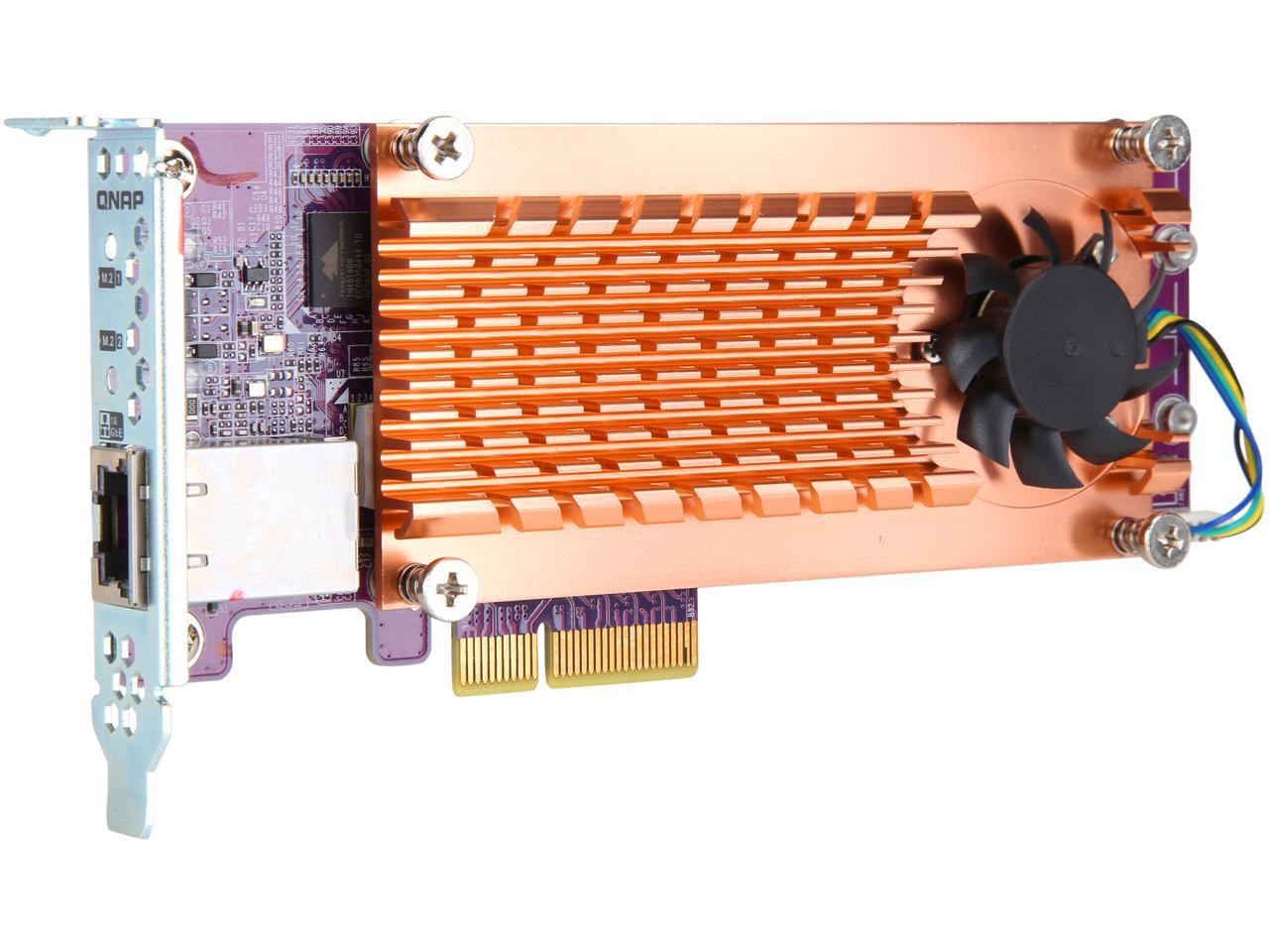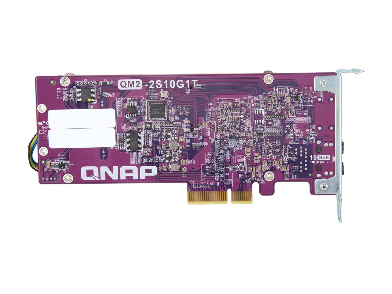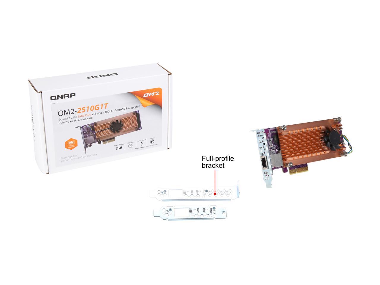 QNAP QM2-2S10G1T Dual M.2 22110/2280 SATA SSD and Single 10GBASE-T 10GbE Network Expansion Card (PCIe Gen2 x 4), Low-Profile Bracket pre-Loaded, Flat and Full-Height are Bundled, SSD not Included