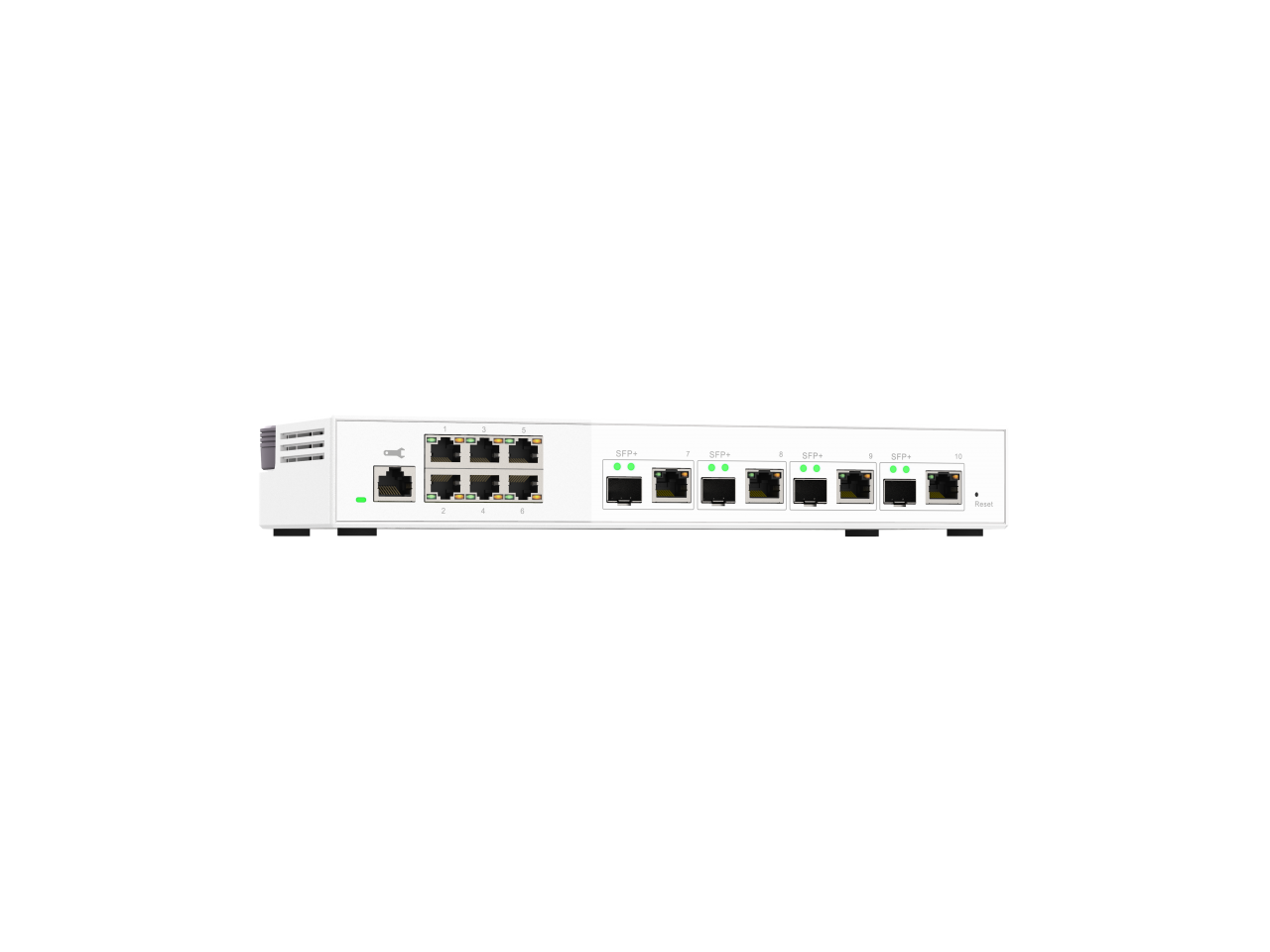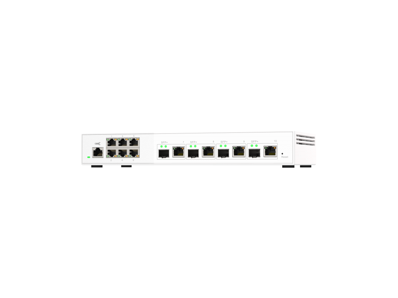 - 6 x 2.5GbE (1G/100M) ports and 4 x 10G SFP+/ NBASE-T (10G/5G/2.5G/1G/100M) combo ports.