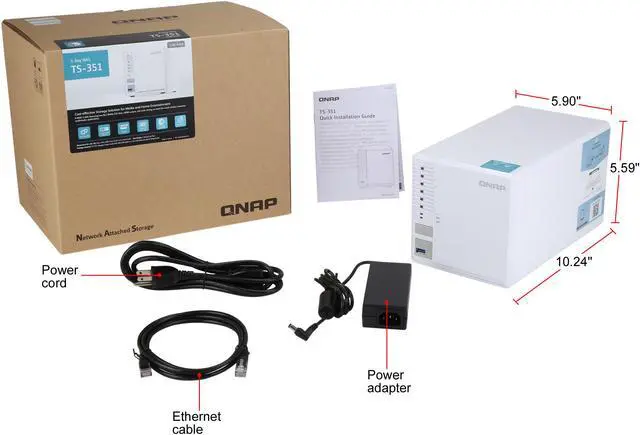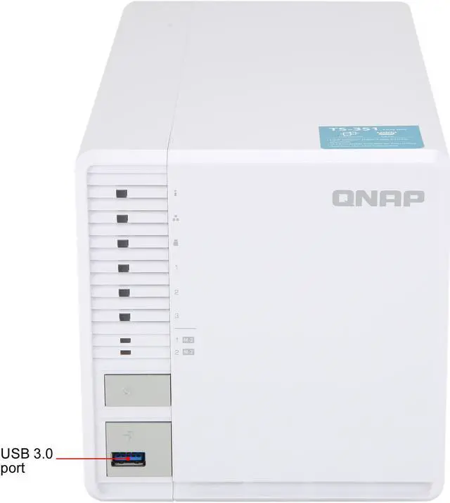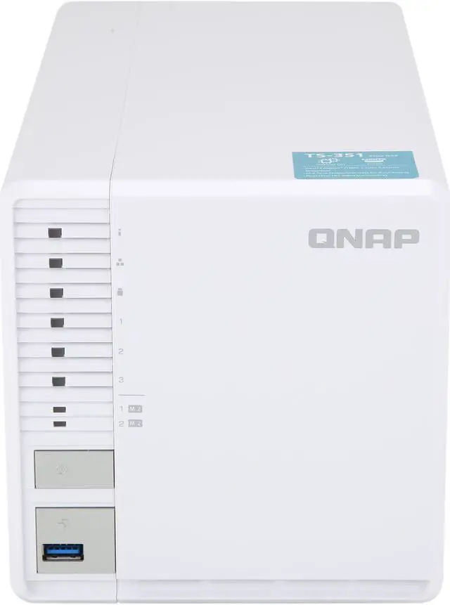 MAIN OVERVIEW FEATURES: Number of Hard Drives Supported: 3Number of Hard Drives Installed: NoNumber of Solid State Drive Supported: 3Number of Solid State Drive Installed: NoFlash Memory Capacity: 512 MBProcessor Manufacturer: IntelProcessor Type: CeleronProcessor Model: J1800Processor Core: Dual-core (2 Core)Processor Speed: 2.41 GHzStandard Memory: 2 GBMemory Technology: DDR3L SDRAMEthernet Technology: Gigabit EthernetNumber of Total Expansion Bays: 3Number of 2.5"/3.5" Bays: 3Controller Type: Serial ATA/600RAID Supported: YesRAID Levels: 0, 1, 5, Hot Spare, JBODHDMI: YesTotal Number of USB Ports: 3Number of USB 2.0 Ports: 2Number of USB 3.0 Ports: 1Network (RJ-45): YesOperating System: QTS 4.3.4Protocols: DNS,Telnet,DLNA,IPv6,FTPS,FTP,SSL,WEBDAV,SSL/TLS,AFP,CIFS,Bonjour,HTTPS,SMSC,NFSv3,SSH,DHCP,SMB,FXP,SMTP,SFTP,AFP 3.3,LDAP,iSCSI,TFTP,IPv4,UPnP,TCP/IP,PPTP,HTTP,CIFS/SMB,DDNS,RSync,SNMPHeight: 5.6"Width: 5.9"Depth: 10.2"Form Factor: TowerWeight (Approximate): 3.62 lbPackage Contents: TS-351-2G SAN/NAS Storage System 1 x Ethernet Cable 1 x Power Cord AC Adapter 2 x M.2 SSD Heatsinks Quick Installation Guide (QIG) Limited Warranty: 2 Year