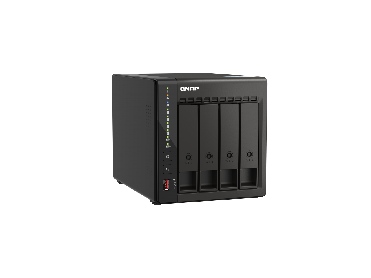 QNAP 4-Bay High-Performance desktop NAS with Intel Celeron 4-Core J6412, onboard 8GB RAM, 2 x 2.5GbE, 1 x HDMI 1.4b, 2 x M.2 PCIe Gen 3 Slots, 2x USB 3.2 Gen2 Type A, long term supply up to 2029