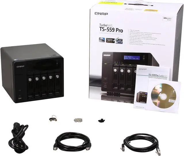 The QNAP TS-559 Pro is the powerful 5-bay network attached storage (NAS) server, which can let you build RAID 0/1/5/6/5+spare/6+spare, single and JBOD disk configurations. The Turbo NAS is designed to provide an affordable and easy-to-management solution with iSCSI service for virtualized and clustered environment.