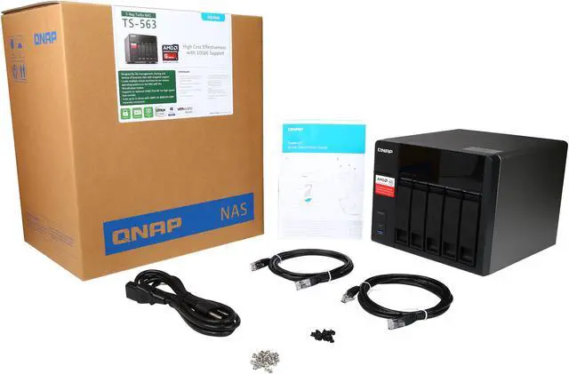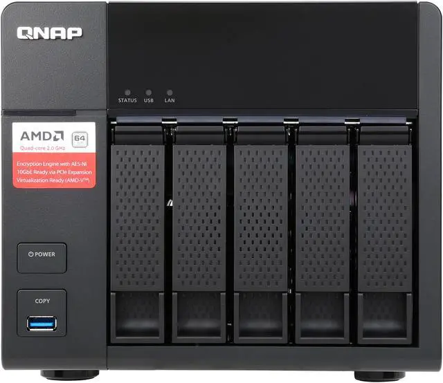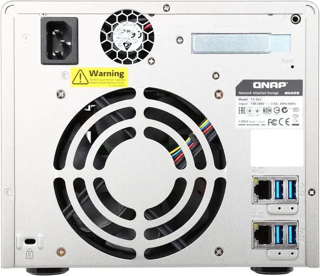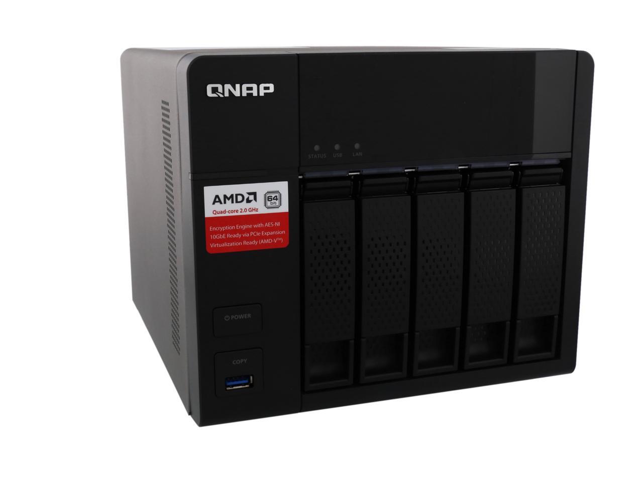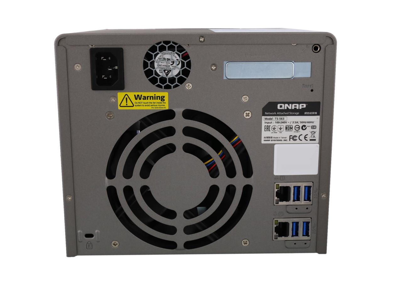 The TS-563 is a powerful network storage system powered by a high-performance AMD® quad-core processor. It uniquely provides the potential for 10GbE expandability at a budget price to maximize ROI, and doubles the encrypted file transfer performance with the AES-NI hardware-accelerated encryption engine to over 400 MB/s. Powered by the QTS operating system, the TS-563 provides versatile all-in-one server functionalities as well as unique features including Virtualization Station, which allows users to run VMs on the same device. The TS-563 is designed for small and medium-sized businesses looking for backup, restoration, private cloud, storage for virtualization, and to future-proof their IT infrastructure for 10GbE networks.