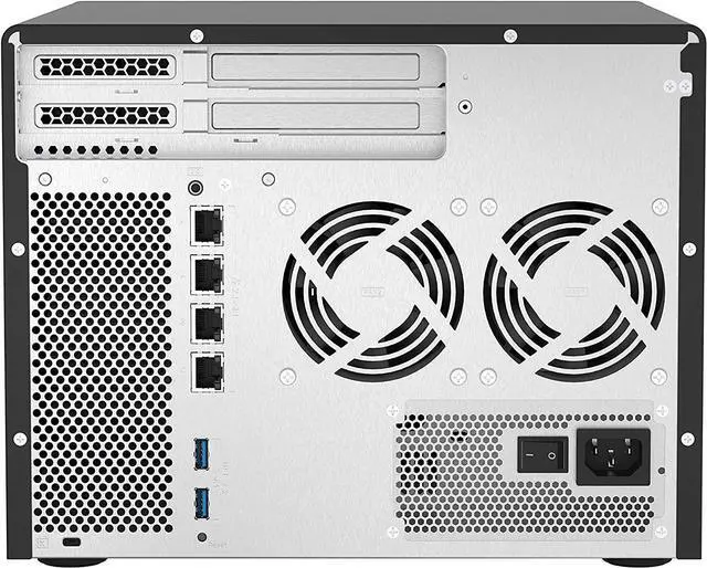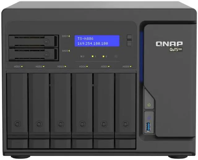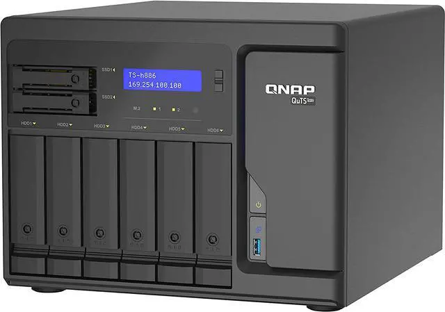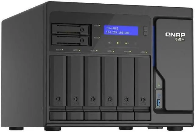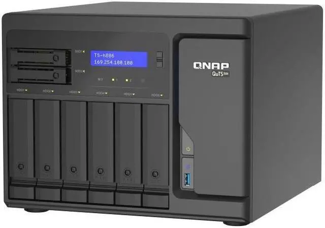 QNAP 8-Bay QuTS hero NAS, Xeon D-1622 2.6GHz, 16GB ECC RAM, 4 x 2.5GbE, PCIe expansion slot x2, built-in M.2 NVMe Gen3 x4 port x2. Intel Xeon D-1622 2.6GHz, 16GB ECC RAM (max 128GB), 4 x 2.5GbE, iSCSI, RAID 0,1, 5, 6, 10, 5+spare, 6+spare, 10+spare, global hot spare, PCIe expansion slot x2, 250W single power supply