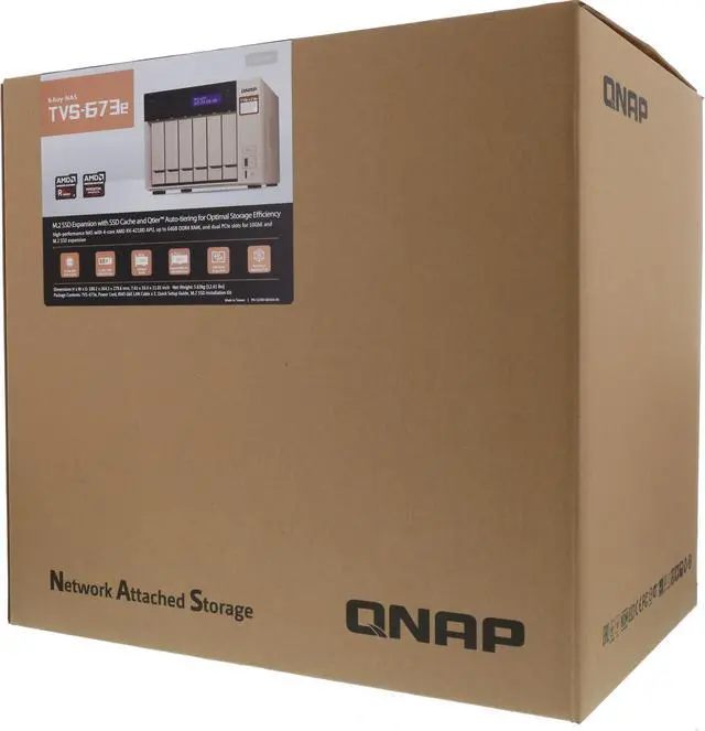 AMD Embedded R-Series SoC uses "Excavator" x86 CPU cores, and supports AMD Radeon™ 3rd-generation GCN and DDR4. The AMD RX-421BD APU, featuring an integrated Radeon™ R7 series Graphics Processing Unit, provides the TVS-673e with the high-end model of the AMD R-Series family. The TVS-673e also provides two PCIe Gen3 x4 expansion slots for boosting the potential for 10GbE network performance.