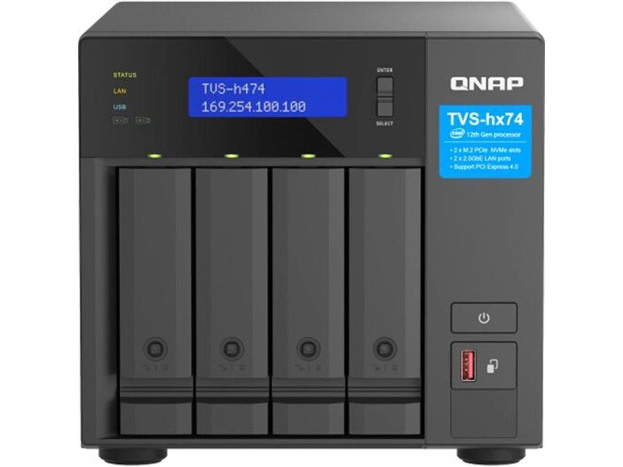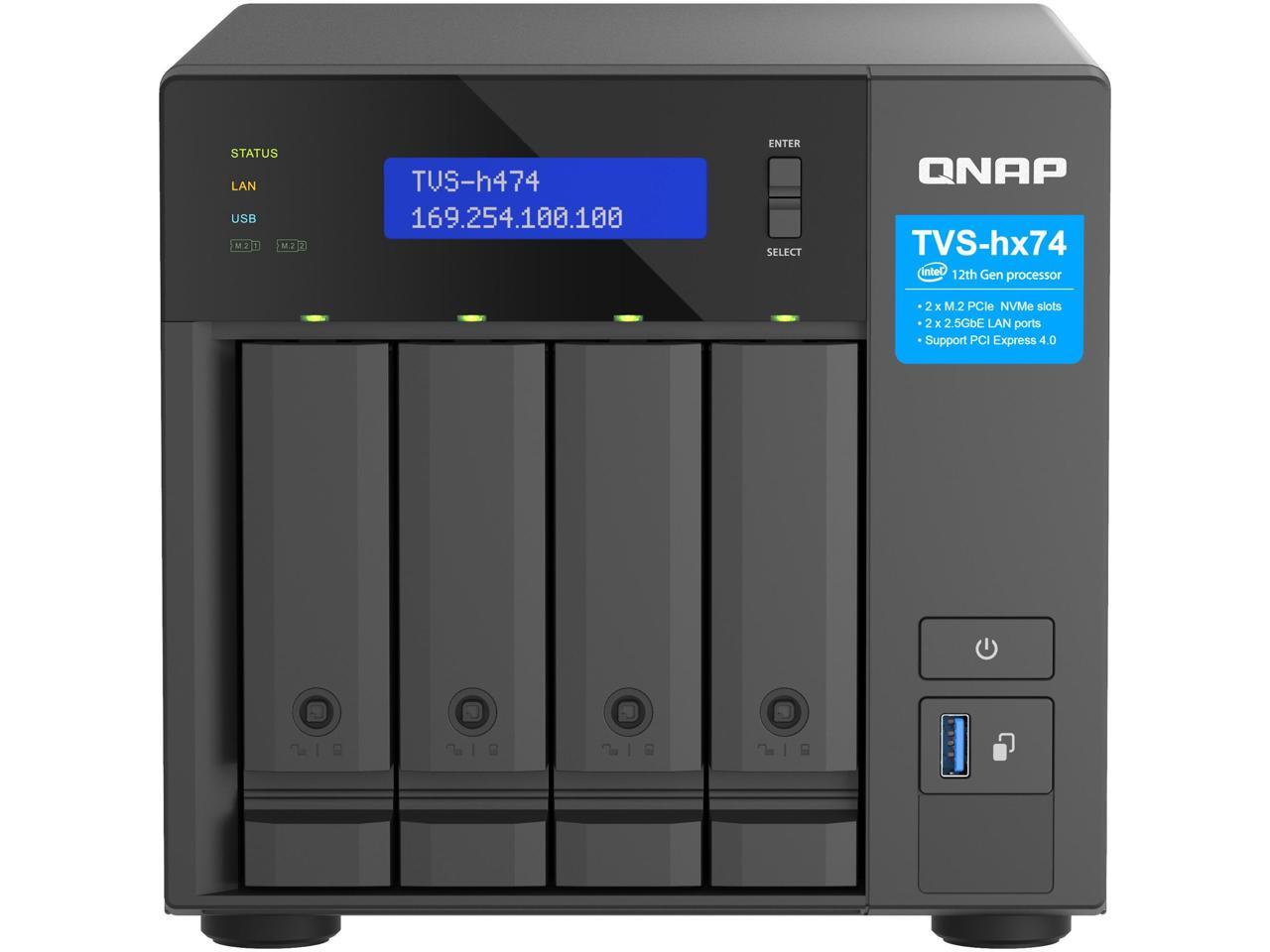 QNAP TVS-h474-PT-8G-US 4 Bay High-Speed Desktop NAS with Intel® Pentium® Gold 2-core CPU, 8GB DDR4 Memory, 2.5 GbE Networking and PCIe Gen 4 expandability (Diskless) (TVS-h474-PT-8G-US)