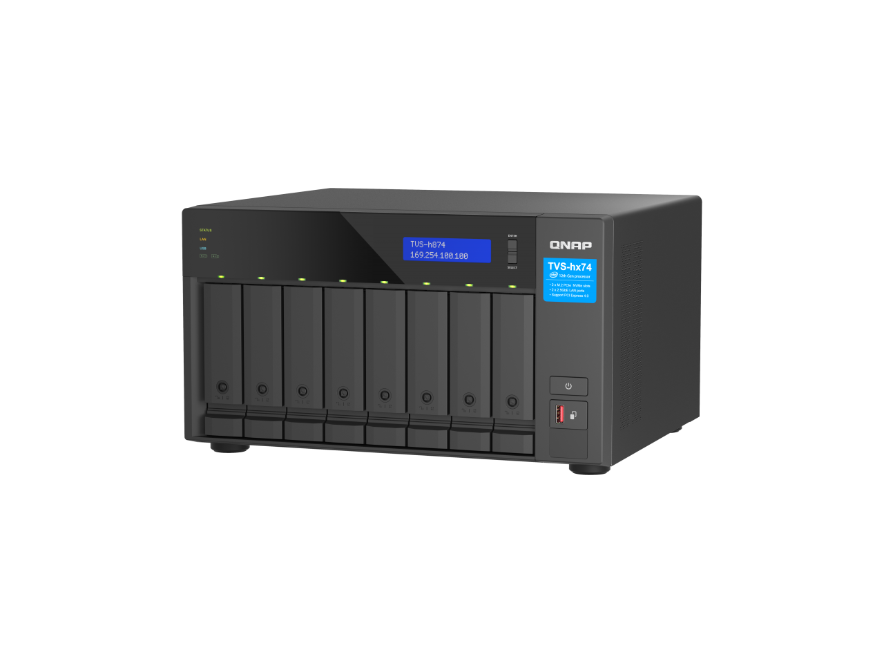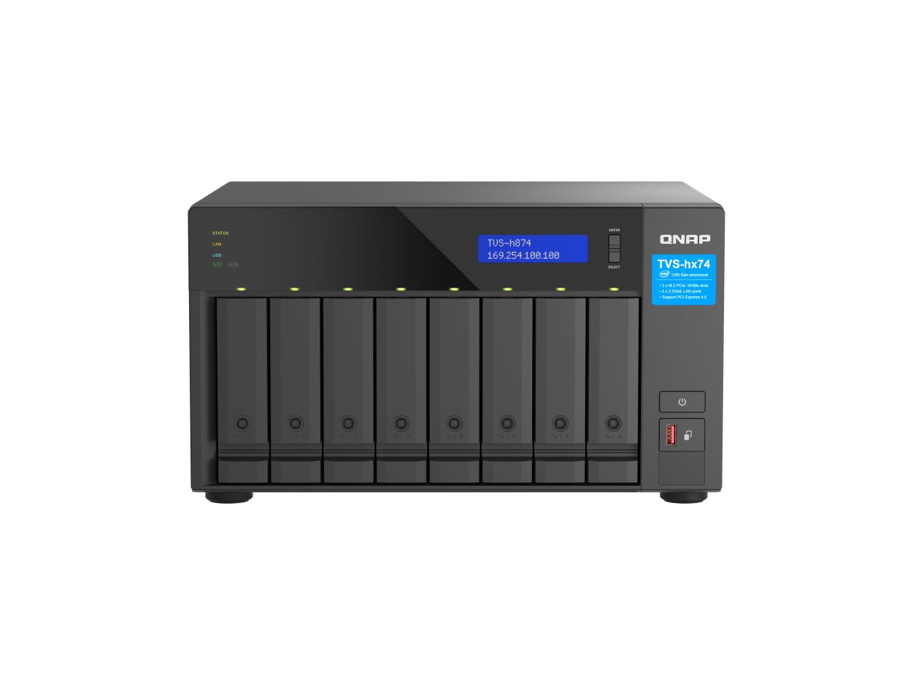 QNAP Ultra-High Speed 8 Bay NAS. Intel® Core™ i5-12400 6C/12T, 32GB RAM DDR4 RAM, 3.5"/2.5" HDD/SSD slot x 8, M.2 PCIe SSD Gen4 x 4 slot x 2, 2.5GbE x 2, PCIe Gen4 slots, HDMI 1.4b, USB 3.2 Gen 2, 250W PSU