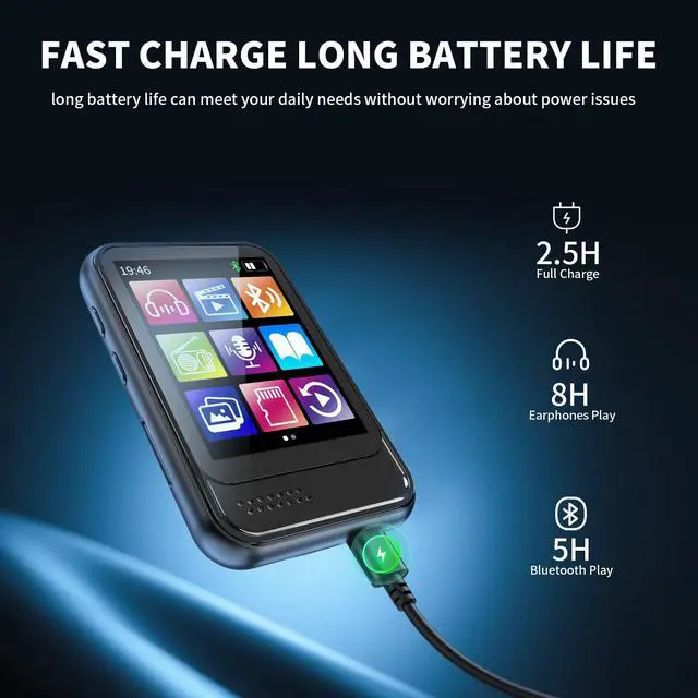 Function: Music/Video/FM Radio/E-book/Bluetooth/Picture/Folder/Voice recording/Setting/Stopwatch/Calendar/Alarm.