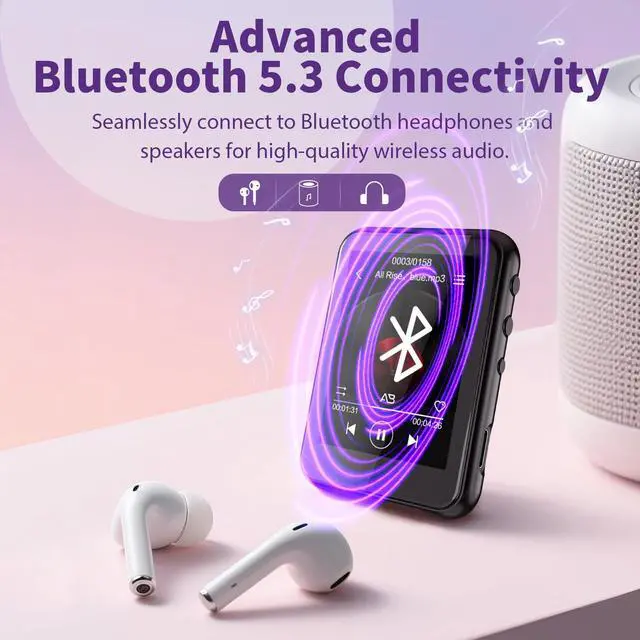 64GB MP3 Player with Bluetooth 5.3, 2.4 inch Full Touchscreen Music MP3 for Kids, FM Radio, Voice Recorder, HiFi Sound, E-Book, Earphones Included