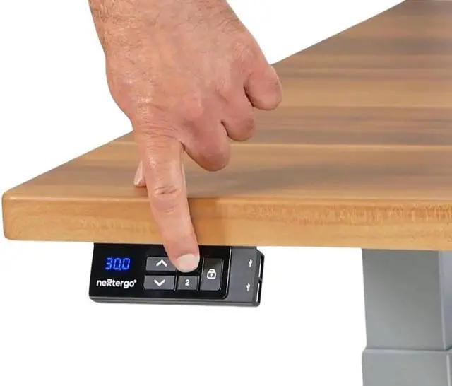 The digital LED remote controller enables one-touch adjustments. It has two programmable memory presets for your preferred sitting and standing heights. The controller also offers a child lock feature and two USB ports for charging devices.