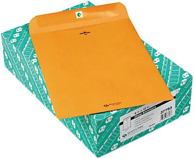 Replenish the office supply with a bulk dispenser. Keeping a large quantity in stock makes it easy for every employee to access the envelopes as needed. They're designed and structured as a basic clasp envelope, useful for schools, administrative records and business mailing, with a smooth, windowless surface for customized messages. The flaps feature both metal clasps and gum adhesive for much-needed peace of mind. Seam Type: Center; Flap Type: Cheese Blade; Trade Size: #12 1/2; Security Tinted: No.