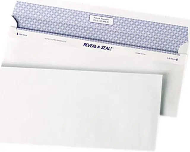 Reveal-n-Seal Envelopes with security tint feature a unique adhesive that provides strong, moisture-free secure seal and an extended shelf life. You'll have no removable strip to throw away. Privacy of contents is enhanced by security tint, and perforations along flap show evidence of tampering. Envelopes are made of 24 lb. stock.