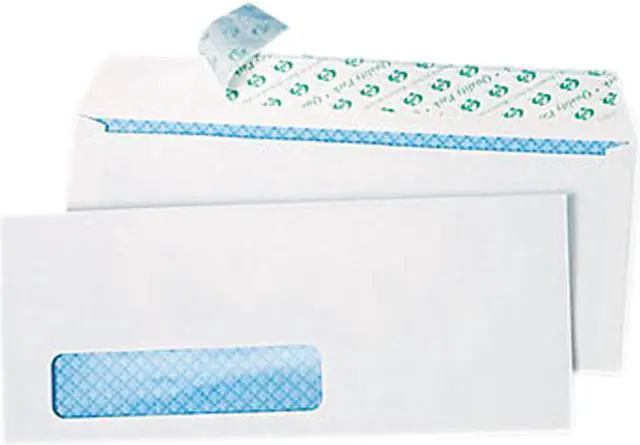 No. 10 business window envelopes feature a removable sealing strip for a clean, quick seal without moisture. Simply peel back the strip and fold the flap closed. Pressure-sensitive gum forms a permanent bond. The paper strip keeps the adhesive free of dust, ensuring a long shelf life. White wove envelopes are security tinted. Envelopes are made of 24 lb. stock.